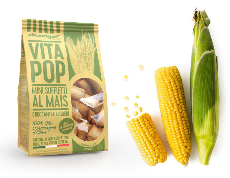 Per capire tutto il buono di questa farina bisogna partire proprio dal mais, straordinario prodotto della terra. I suoi chicchi contengono dosi elevate di ferro, vitamine del gruppo B e acido folico, il mais è quindi un alimento imprescindibile per chi soffre di anemia e per le donne in gravidanza. Non meno importanti sono i livelli di sali minerali essenziali e di fibre racchiusi in questo cereale, che quindi fa bene proprio a tutti, aiutando a tenere sotto controllo il colesterolo cattivo, l’indice glicemico e il corretto funzionamento del nostro organismo. Ecco perché la farina di mais è un ingrediente d’eccellenza che Vitavigor utilizza nella produzione dei suoi soffietti VITAPOP, snack speciali non solo nel gusto ma anche nell’innovativa forma “soffiata”, un prodotto leggero, croccante e dall’insuperabile sapore rustico e artigianale.